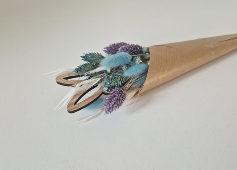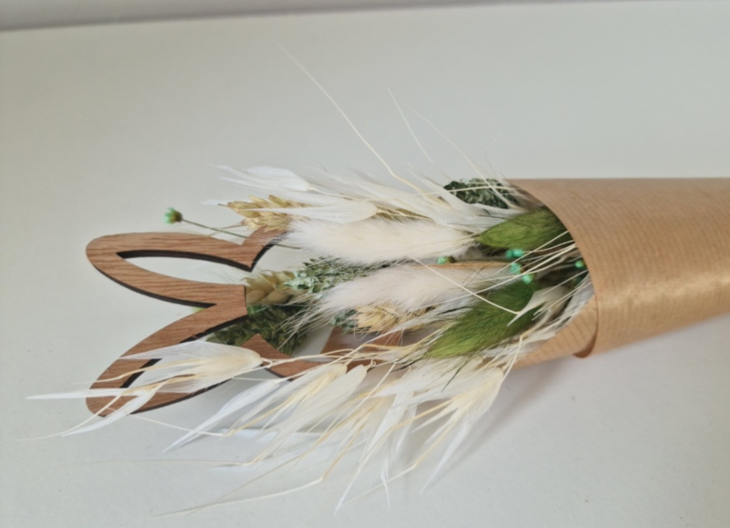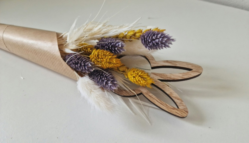 OverzichtDe boeketten bestaan uit vrolijke en frisse droogbloemen.