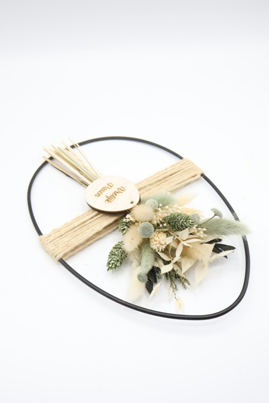 Paasei met touw en droogbloemenBreng de lente in huis met deze prachtige handgemaakte Paasei krans! Dit unieke decoratiestuk is vormgegeven als een elegant paasei en omwikkeld met natuurlijk touw, wat zorgt voor een rustieke uitstraling. De krans is verfijnd…
